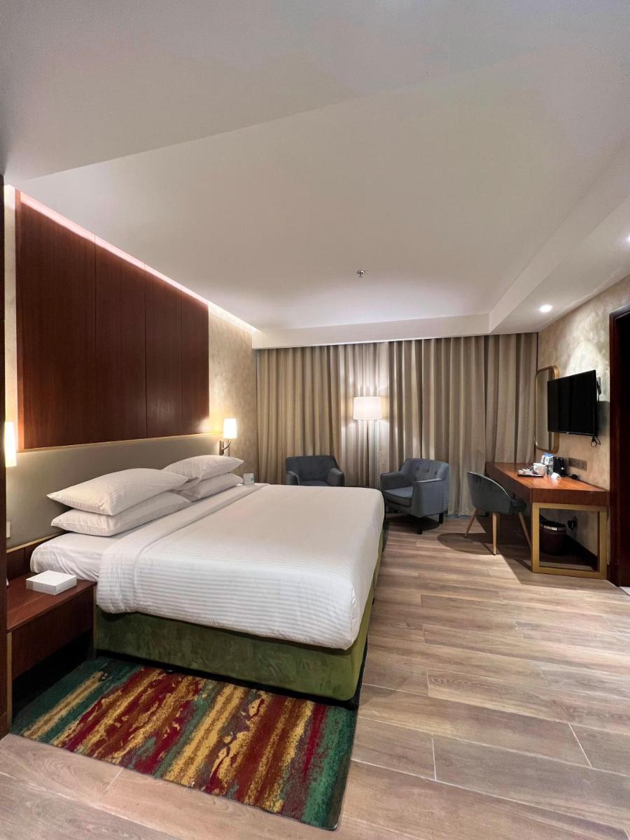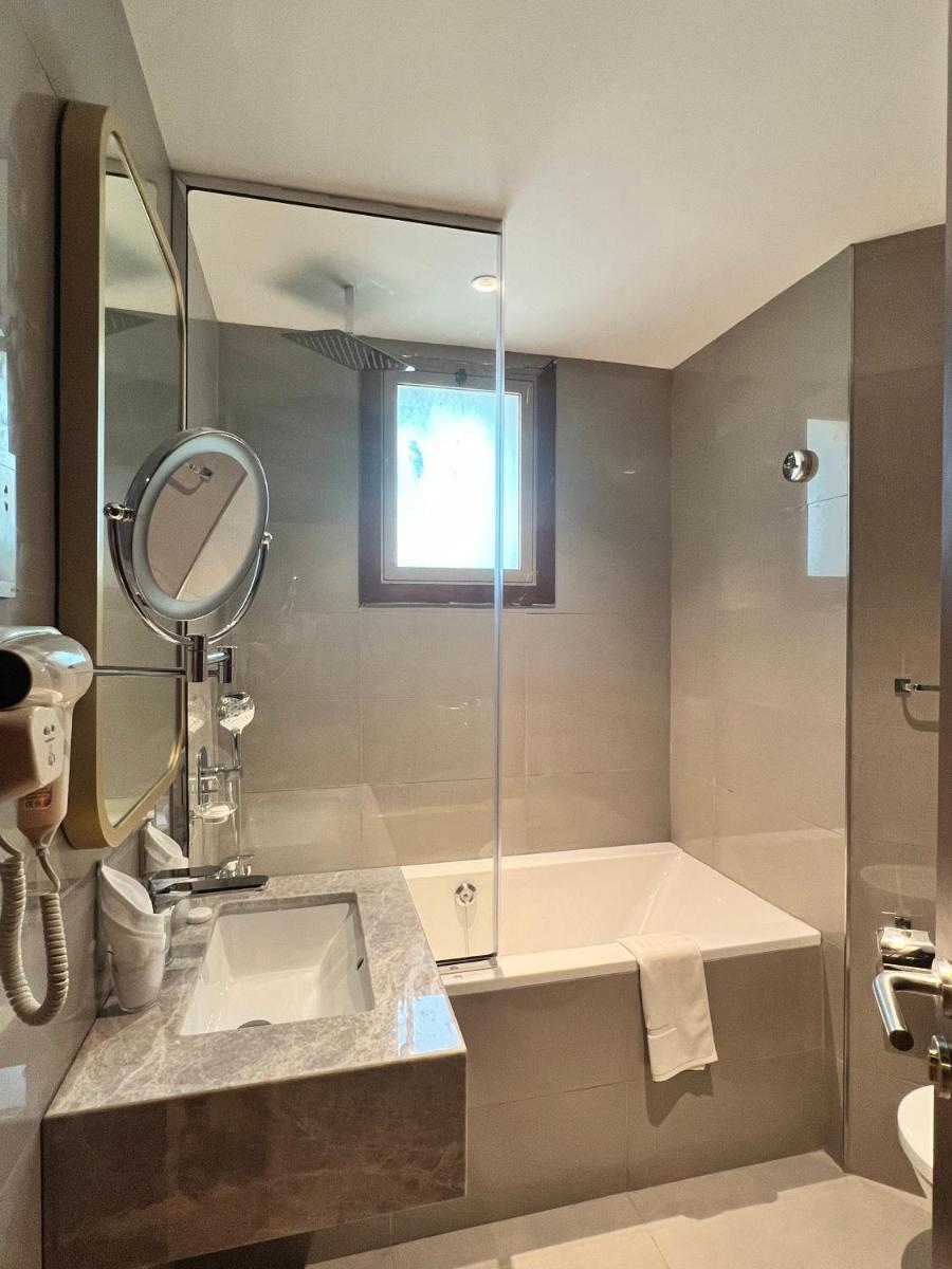 Guests can expect polished surfaces, modern furnishings, and the flexibility of apartment living across the property. Common areas, from the restaurant to the wellness space, show a balance of utility and comfort, while exterior views place the building firmly in Deira’s energetic grid. The atmosphere is that of a hotel that knows its role: a practical yet stylish base in a district alive with movement.